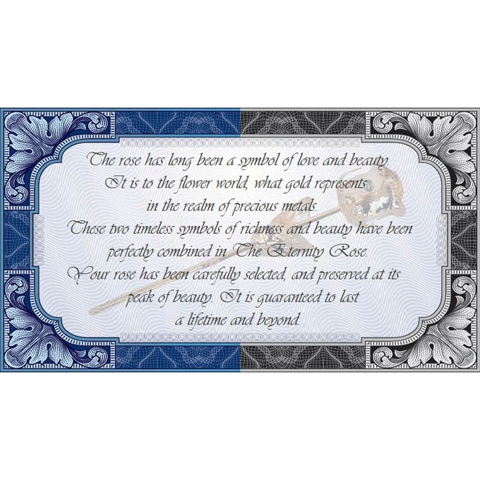 Les acheteurs recevront une garantie à vie attestant de la haute qualité de cet assortiment de la gamme primée Eternity Rose qui a été désignée et créée selon les normes européennes établies. Si vous connaissez une dame qui apprécie les bijoux superbement réalisés et la beauté saisissante d'une rose à la forme parfaite, c'est le cadeau idéal.